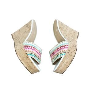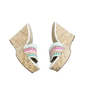 summer footwear, wedge heels, raffia shoes, cork sandals, resort wear, vacation wear, bohemian chic, luxury shoes, designer footwear, colorful wedge, poolside style, E0