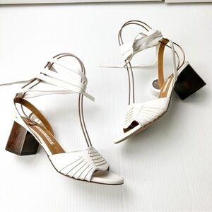 Veronica Beard Sandals womens size 8.5/38.5 white leather ankle strap slingback