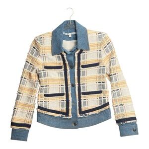 Veronica Beard Santiago Blazer‎ Jacket Tweed Denim Sz 0 NEW Cotton
