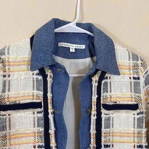 Veronica Beard Santiago Button Front Tweed Denim Jacket Womens Size 0