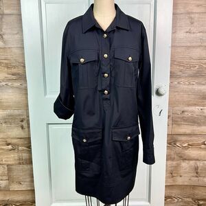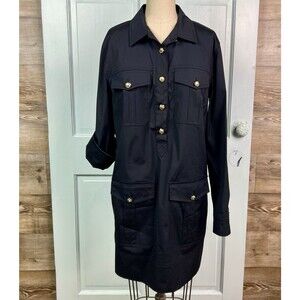 Veronica Beard Saude Cargo Dress Black Roll-up Sleeves Patch Pockets Size 12