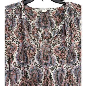 Stunning Veronica Beard Sazan dress in excellent, new condition! This beautiful mini dress features a vibrant paisley pattern and a unique handkerchief hem that adds a touch of bohemian flair. Perfect for parties, date night, or any special occasion where you want to make a statement.