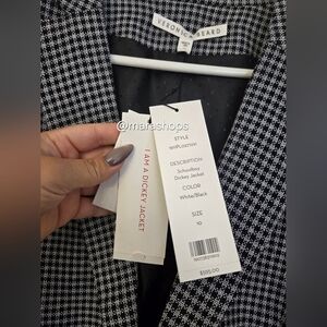 Veronica Beard Schoolboy Houndstooth Check Cotton Dickey Jacket Blazer