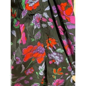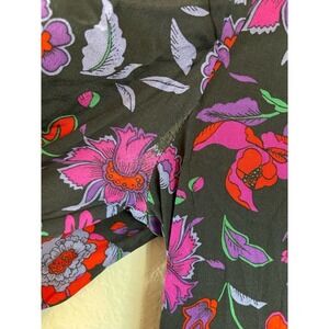 Black multi floral printed silk crepe de chine (93% Silk). Sheath. Long sleeves. Crew neckline. Hidden side zipper closure with loop. Partially lined. 56.5" from shoulder to hemline. Side slit.