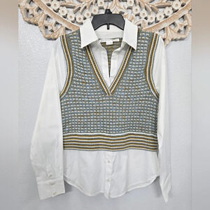 Veronica Beard Serwa Mixed Media Vest Top. Size small. In great used condition! Two minor spots very insignificant they hardly show up on camera! See pic 7 & 8.