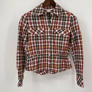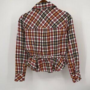 Color/Print: Multi plaid / check (red, black, white, yellow accents)