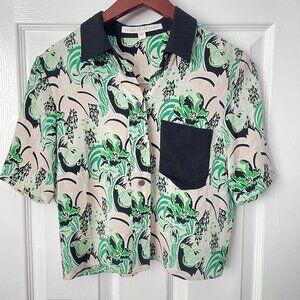 Veronica Beard Silk Cropped Button Up Shirt Size 2