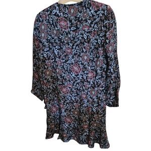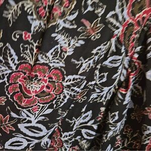Front button closure. Jewel neck. Bracelet sleeves. 100% silk.