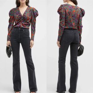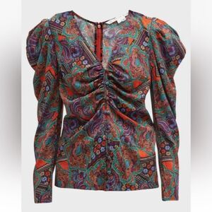 Veronica Beard Simmons Silk-Blend Puff-Sleeve Ruched Blouse Women's 4 - Small