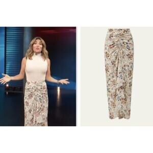 EUC Veronica Beard Sira Floral Silk-Georgette Skirt in Ecru Multi size 0. Cream and floral skirt with cinch and tapering down the front.