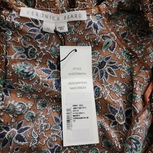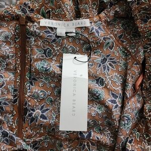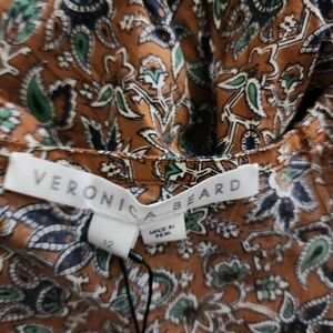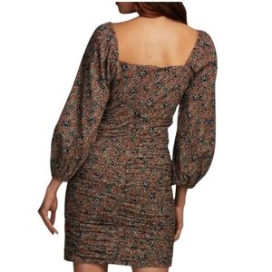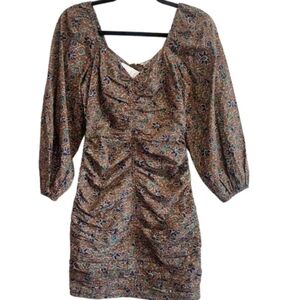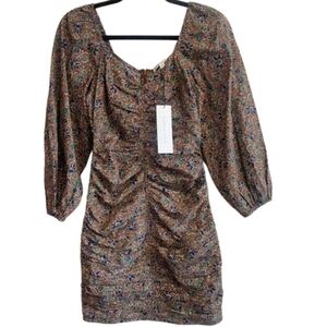 Veronica Beard Size 12 Nadi Mini Dress Puff Sleeve Ruched Cinnamon Multi Brown