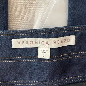 ✨ Veronica Beard skinny flare jeans. Dark wash. Double button detail. Faux pockets. The fabric shows minor fading in spots—check the photos. Still in solid used condition.