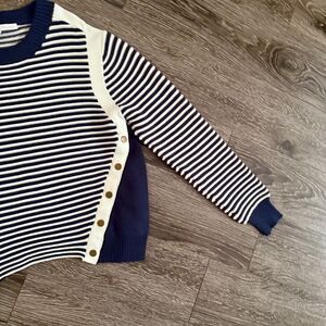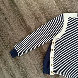 Veronica Beard Striped Milou Ottoman Snap Mock Neck Sweater