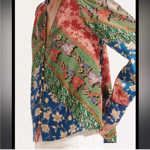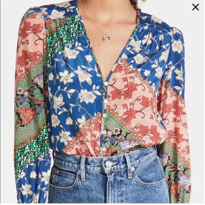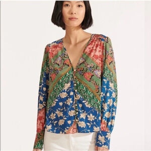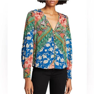 Veronica Beard Sura Floral Silk Blouse 2 Long Sleeve Button Down