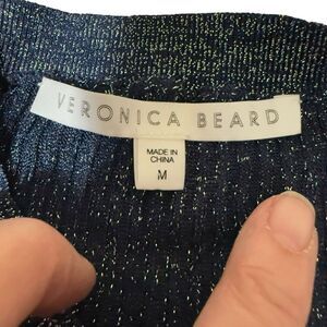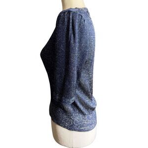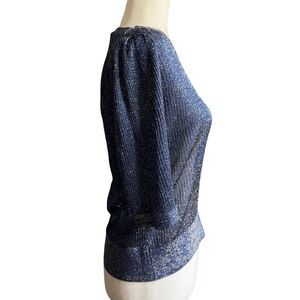 Veronica Beard Sweater Uma Blue Metallic Shimmer Sz M Short Sleeve Holiday