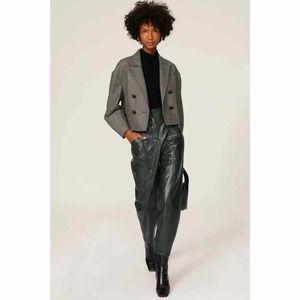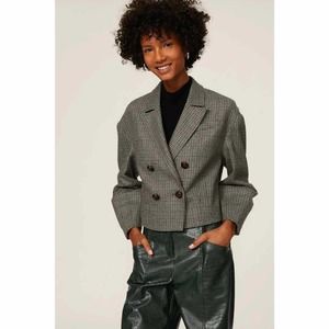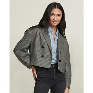 Veronica Beard Sybille Houndstooth Crop Double Breasted Blazer