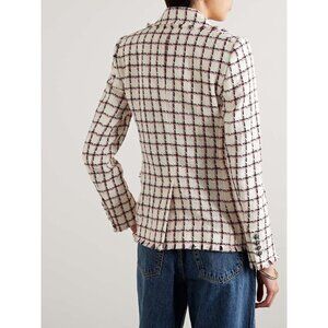 Veronica Beard's 'Taja' blazer is made from tactile cotton-blend tweed and finished with wispy fringed edges. It has a classic double-breasted front that fastens with logo-embossed buttons, and lightly padded shoulders that define the structured shape.