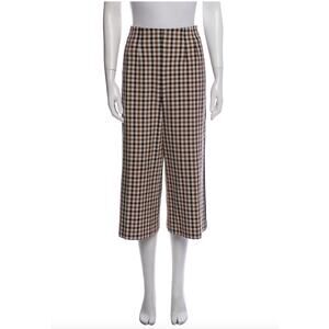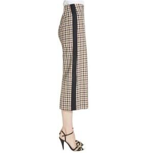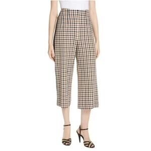 Veronica Beard Tan & Black Plaid Cropped Wide Leg Pants