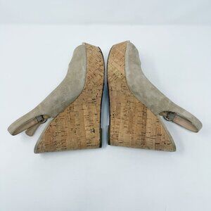 Veronica Beard Tan Suede Peep Toe Slingback Cork Wedges Women's Sz 8.5 High Heel