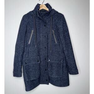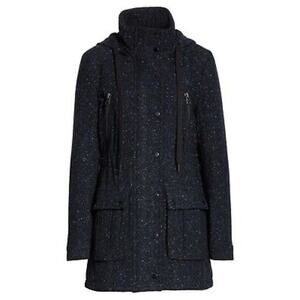 Veronica Beard Tawny Wool Blend Hooded Parka/Coat Navy Blue Tweed Size Small