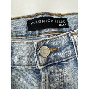Made of denim fabric with a high rise, these wide-leg jeans feature a button closure and a raw hem accent. With a solid blue color and a 31-inch inseam, these jeans are perfect for the summer, fall, and spring seasons. The 5-pocket design and light wash add to the bohemian, casual, and chic look of this piece. Created by the renowned brand Veronica Beard, these jeans offer a mix of comfort and style.