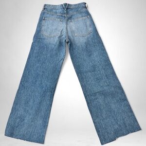 Veronica Beard Taylor High Waist Raw Hem Wide Leg Jeans (Bright Lakeshore)