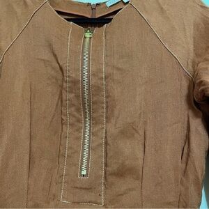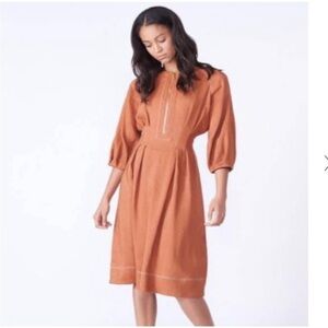 Veronica Beard Terracotta Copper Claudia Linen Blend Zip Front Midi Dress