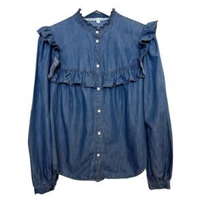 Veronica Beard Tes Chambray Button Down Top Denim Jean Blue Ruffle Western 4