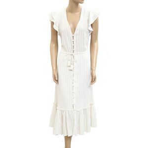 Veronica Beard Tinzia Lurex-Striped Midi Dress Ruffle Flutter Sleeve XS 281110