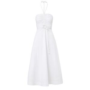Veronica Beard Tucker Halter Neck Stretch Cotton Midi Dress White 4 NWT $548