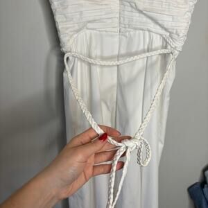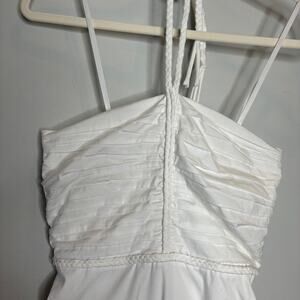 Halter neck with braided strings at the nape and waist