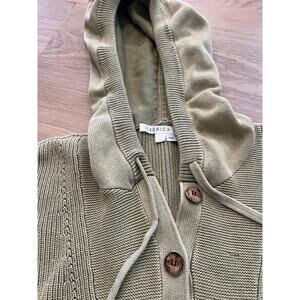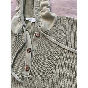 Veronica Beard Ursina Rib Knit Hoodie LARGE GREEN