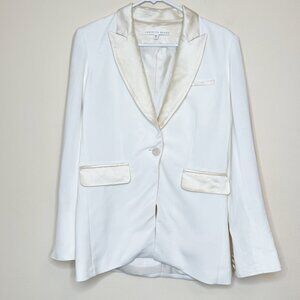 Veronica Beard White Blazer with Cream Satin Collar – Size 4 – Made in USA