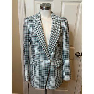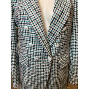 Veronica Beard White Blue Houndstooth Moroso Dickey Jacket $650 Size 8