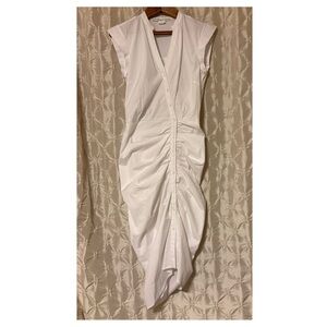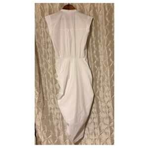 Veronica Beard White Sleeveless Ruched Poplin Shirtdress Button Front