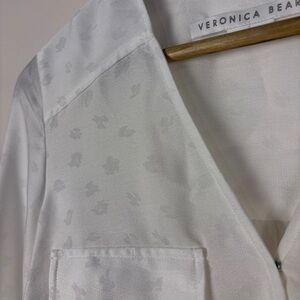 Veronica Beard White V-Neck Pocket Blouse Professional Classic