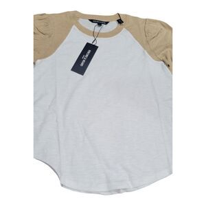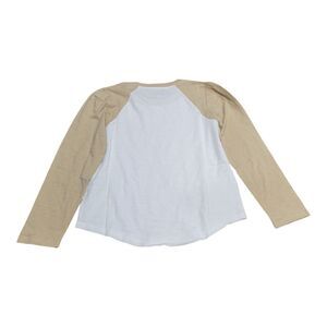 Stylish long sleeve tee with white body and tan sleeves. Perfect for casual wear.