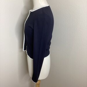 Veronica Beard Wilmer Cropped Cardigan Ribbed Navy Sm