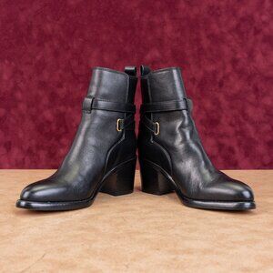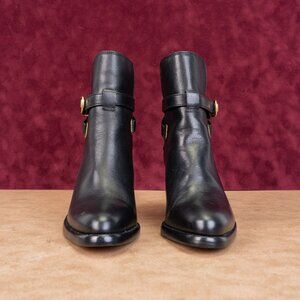 Veronica Beard Women Sohelia Black Leather Buckle Chucky Block Heel Boots size 5