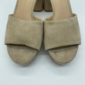 Veronica Beard Women size 7 Tan Suede Dali Strappy Peep Toe Chunky Heel Sandals