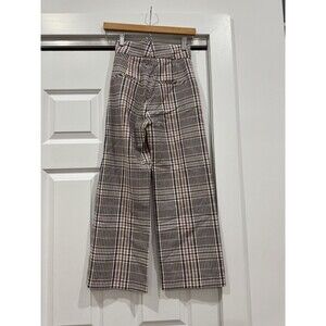 Veronica Beard Womens 00 Check Madero Houndstooth High Rise Wide Leg Crop Pants