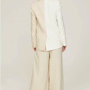 Veronica Beard Two-Tone Linen Blend Double-Breasted Blazer (Size 14)