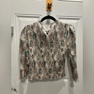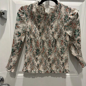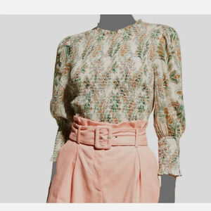 Veronica Beard Women's Green Kali Floral Smocked Top sz 2