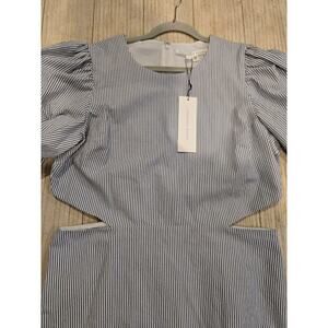 Keywords: Veronica Beard, Iker Cut-Out Mini Dress, party dress, cocktail dress, blue dress, striped dress, spring fashion, puff sleeve, ruffle hem, chic style, women's fashion, new with tags.