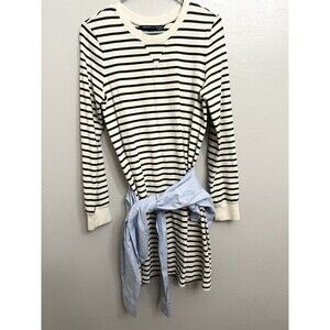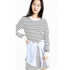 Veronica Beard Womens Long Sleeve Striped Laszlo Dress White Navy Size Small
