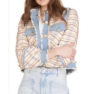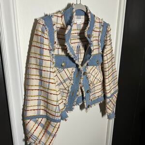 Veronica Beard Women's Nilaja Jacket Multicolor Size 4 Plaid Tweed Denim Trim