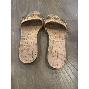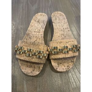 Veronica Beard Womens Sandals Eni Cork Gold Metal Chain Slide Shoe Sz 9