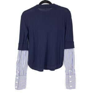 Veronica Beard Women's Size Small Roscoe Mixed Media Merino Wool Sweater Navy