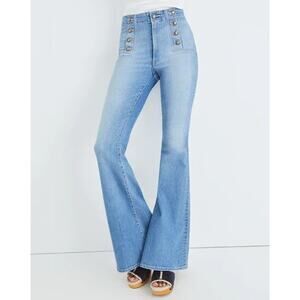 The Veronica Beard Womens Sodlite Sheridan Bell With Sail Jeans in size 29 x 29 are a stylish and versatile addition to any woman's wardrobe. Made from light wash denim with a high rise, these solid blue jeans feature a button closure and a regular fit. The flared style adds a touch of flair, while the practical 5-pocket design offers both style and functionality. Machine washable and crafted from cotton, these jeans are perfect for year-round wear in any season. The Veronica Beard brand ensures quality and attention to detail in every garment.