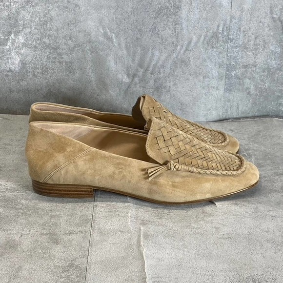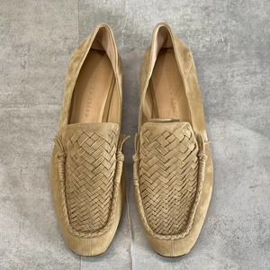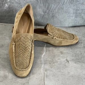 Veronica Beard Women's Tan Leather Round-Toe Woven Anica Loafers SZ 8